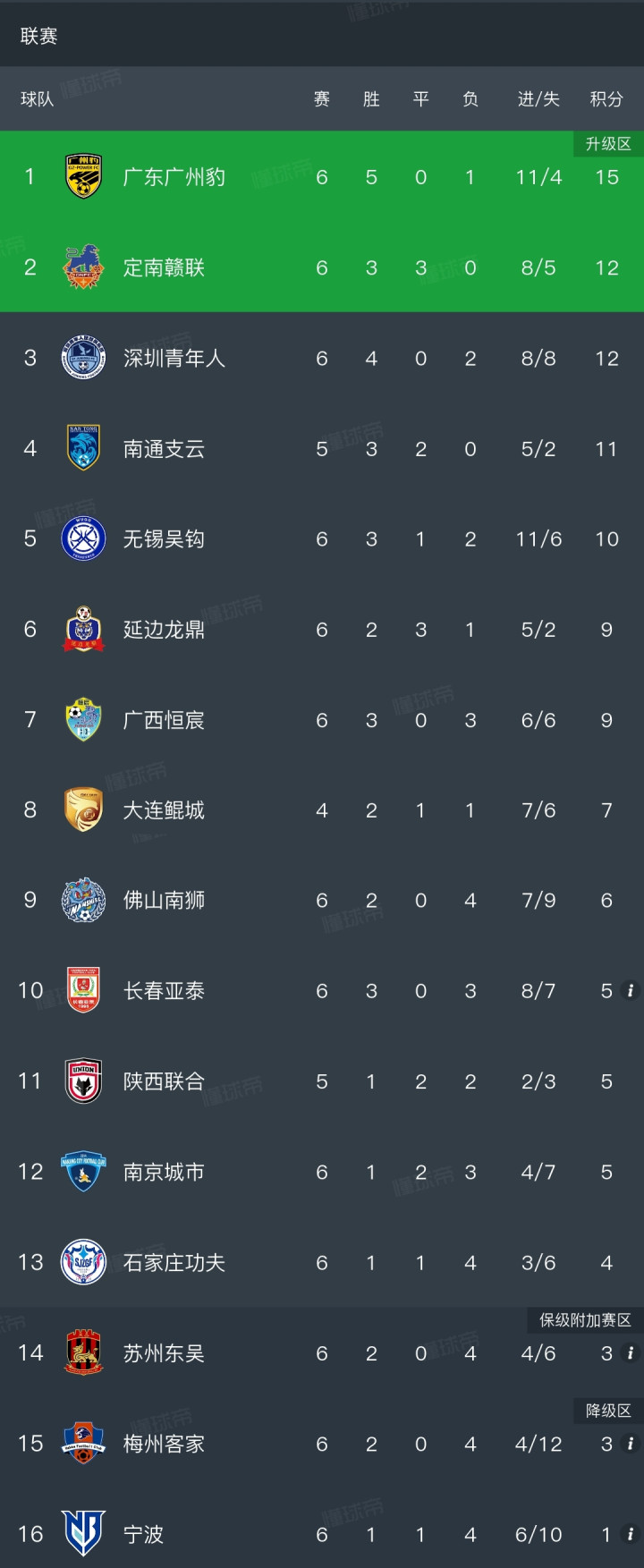 随着亚泰1-2广州豹,中甲积分榜出炉:广东第1定南第2,梅州第15。