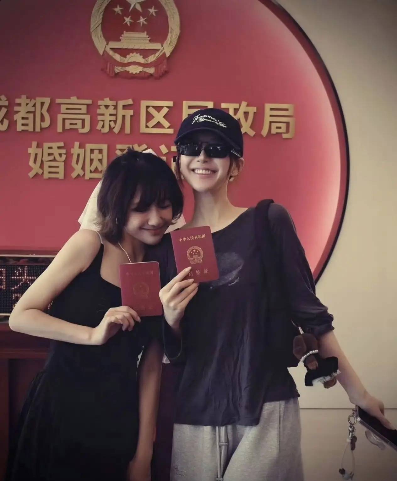 4月25日,魏笑在成都高新区民政局,和一位圈外男友低调领证,你没听错,是“低调”,连个恋爱预告都没发,直接一步到位官宣已婚,这效率银河app,简直是闪婚界的VIP玩家,现场照片里,魏笑一袭黑纱裙配小头纱,手捧结婚证,笑得那叫一个甜,隔着屏幕都能感受到嫁给爱情的幸福感。